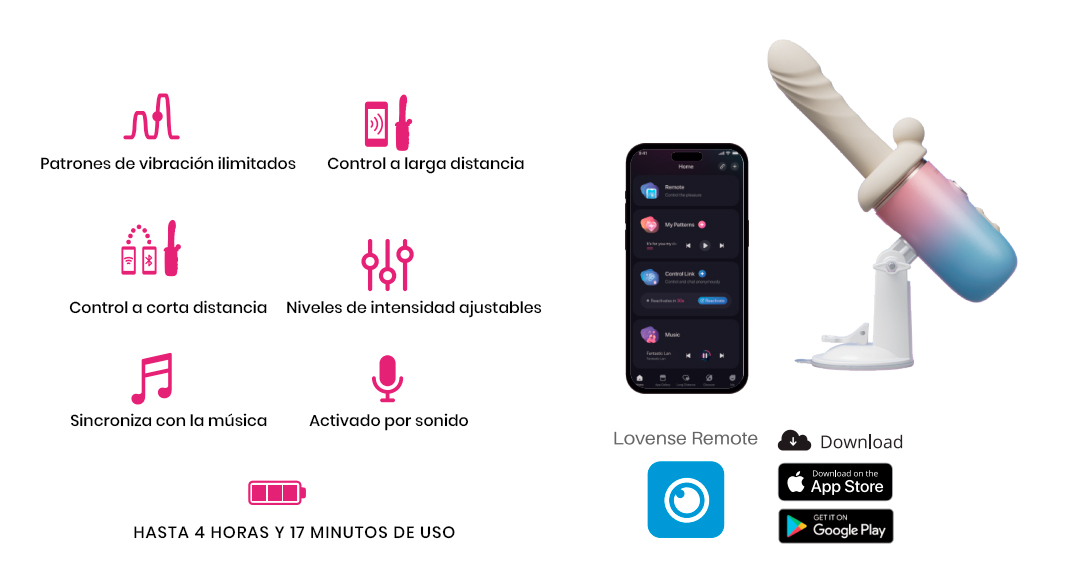 • Modo turbo: hasta 1450 pulsaciones/min (extensible a 60 seg mediante la app Lovense Remote).