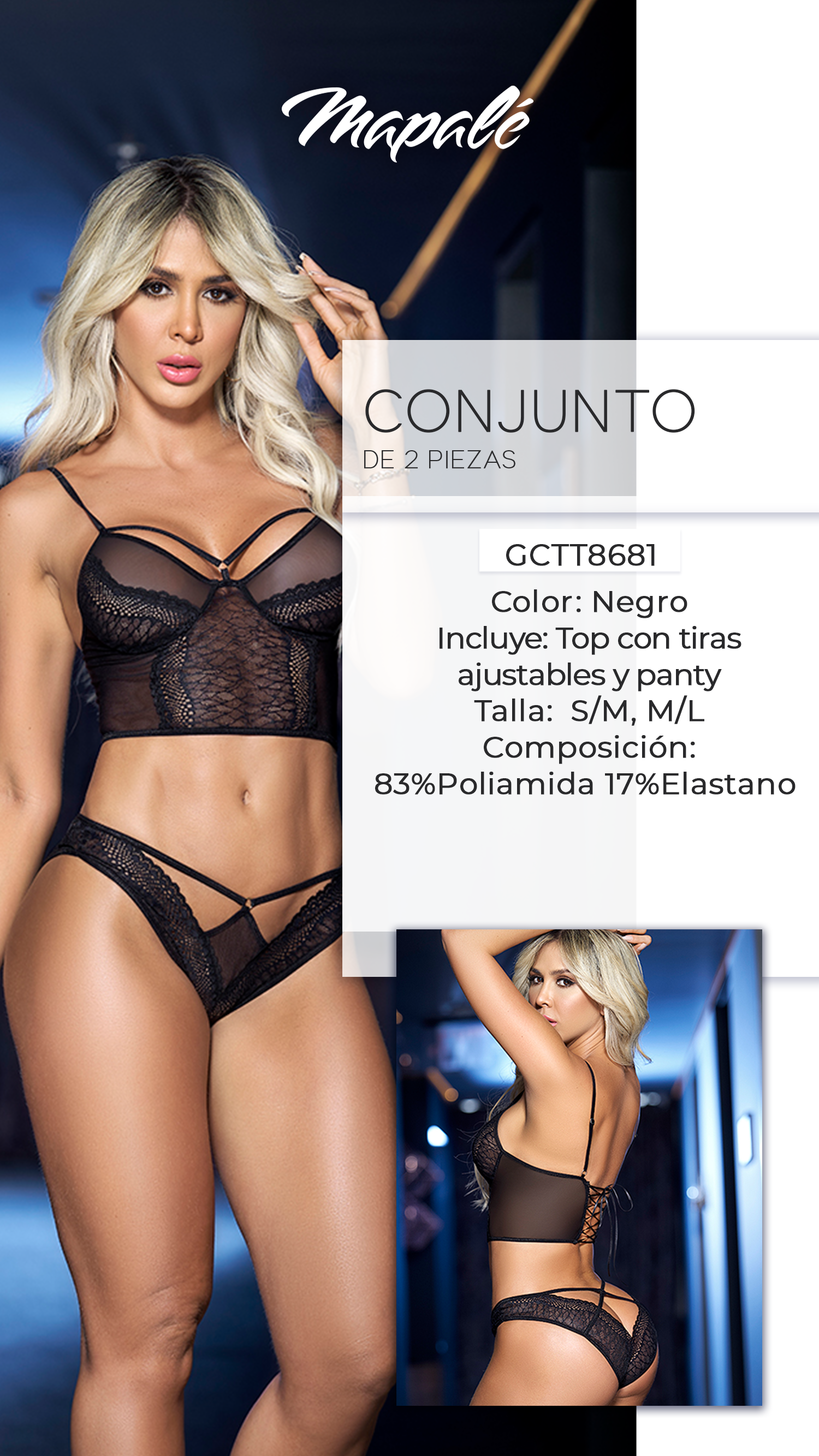 Conjunto de dos piezas. Top con tiras ajustables y panty.