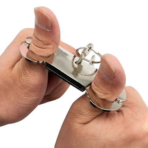 FUNNY STEELEsposas para dedos. Pueden utilizarse en las manos o en los pies y dejar a tu pareja inmovilizada. Ancho: 3 cms Largo total: 9 cms Material: Metal...