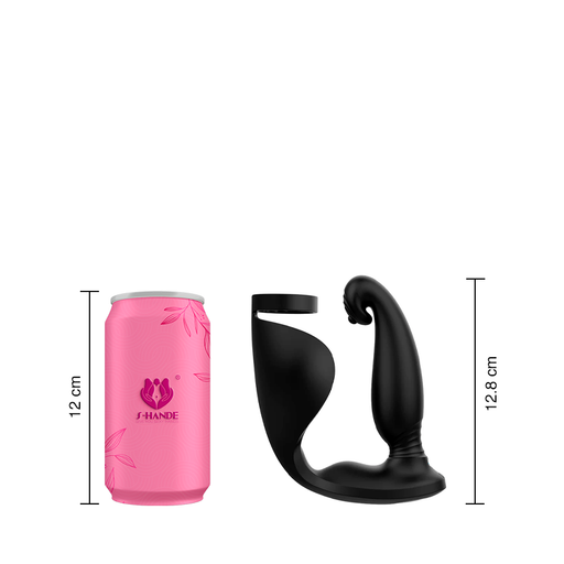 SHANDEEstimulador prostático con extensión de anillo para el pene que estimula testículos. Manéjalo desde su control remoto. Características: Color: N...