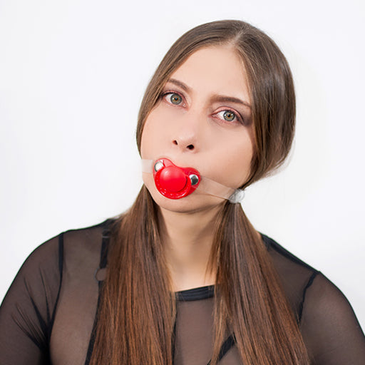 SLUTChupete con amarre posterior graduable, para juegos fetish. Características: Material: ABS + plástico Talla única Largo total: 51.3 cm Ancho total...