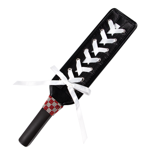 SLUTPaleta de nalgadas rígida con un pequeño cruce de cintas en su parte superior y una franja de muranos rosados en su agarre. Características: Mate...
