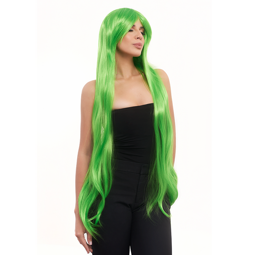 Peluca lisa en tono verde neón y con un largo imponente de 100 cm está hecha para quienes se atreven a romper las reglas y quieren brillar con fuer...