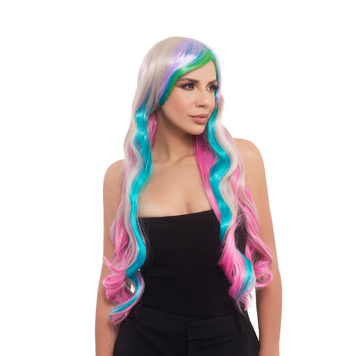 SENSUAL LOVEUna explosión de color y sensualidad. Esta peluca ondulada mezcla lo mejor del rubio radiante, el rosa dulce y el azul vibrante, creando un look qu...
