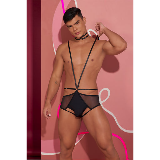 CRUISINGConjunto de lencería masculina en malla. Características: Material: nylon 96% elastane 4% Talla: S/M- L/XL Color: Negro Incluye: pechera-boxer ...