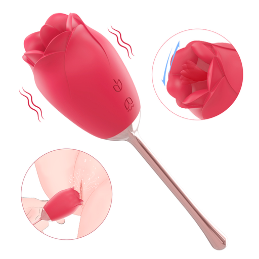 SHANDEEstimulador clitorial y de zonas erógenas en forma de rosa, cuenta con 9 modos de vibración y 9 modos de simulación de sexo oral, que te permitirán...