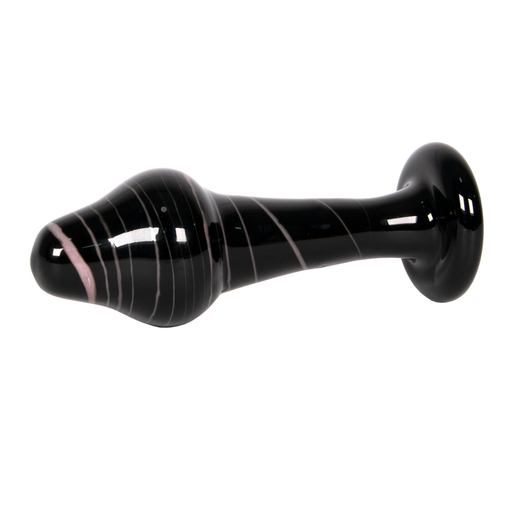 SEXGLASSPlug anal de vidrio con textura lisa y cuerpo con líneas blancas en forma de espiral. Material completamente no-tóxico, soporta temperaturas extrem...